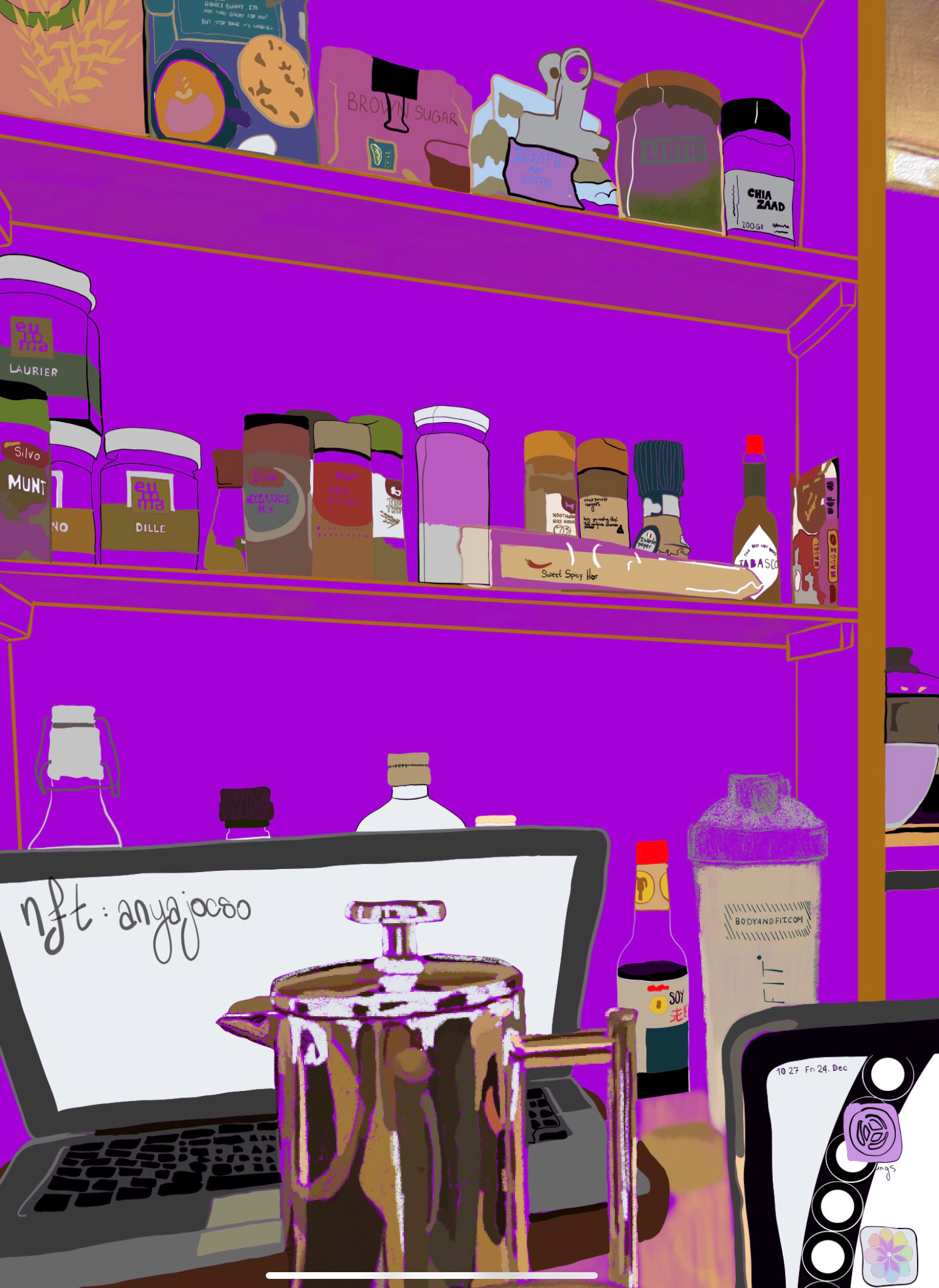 Kitchen stories A series of digital works of the time the Netherlands and most parts of the world went on full lockdown due to Covid-19 in 2021. Magical moments in my kitchen isolating.