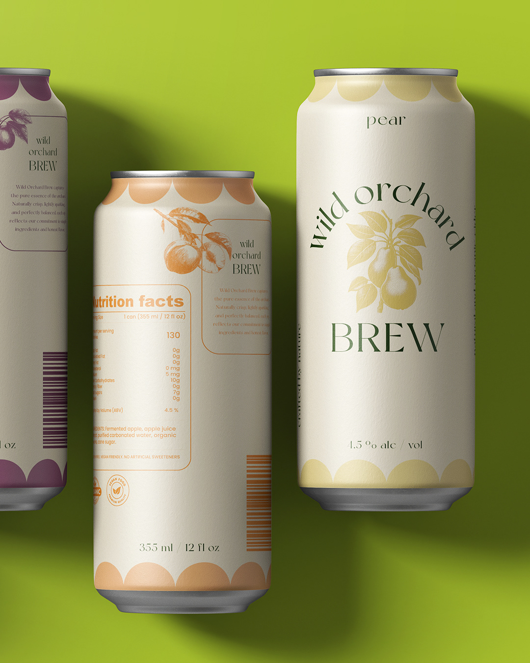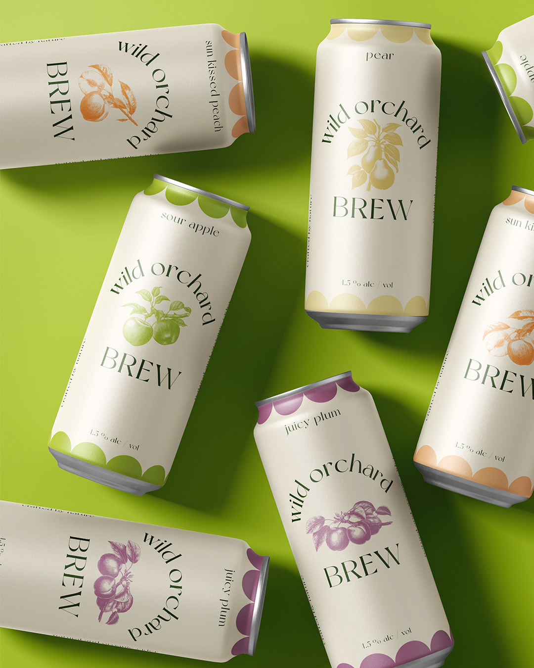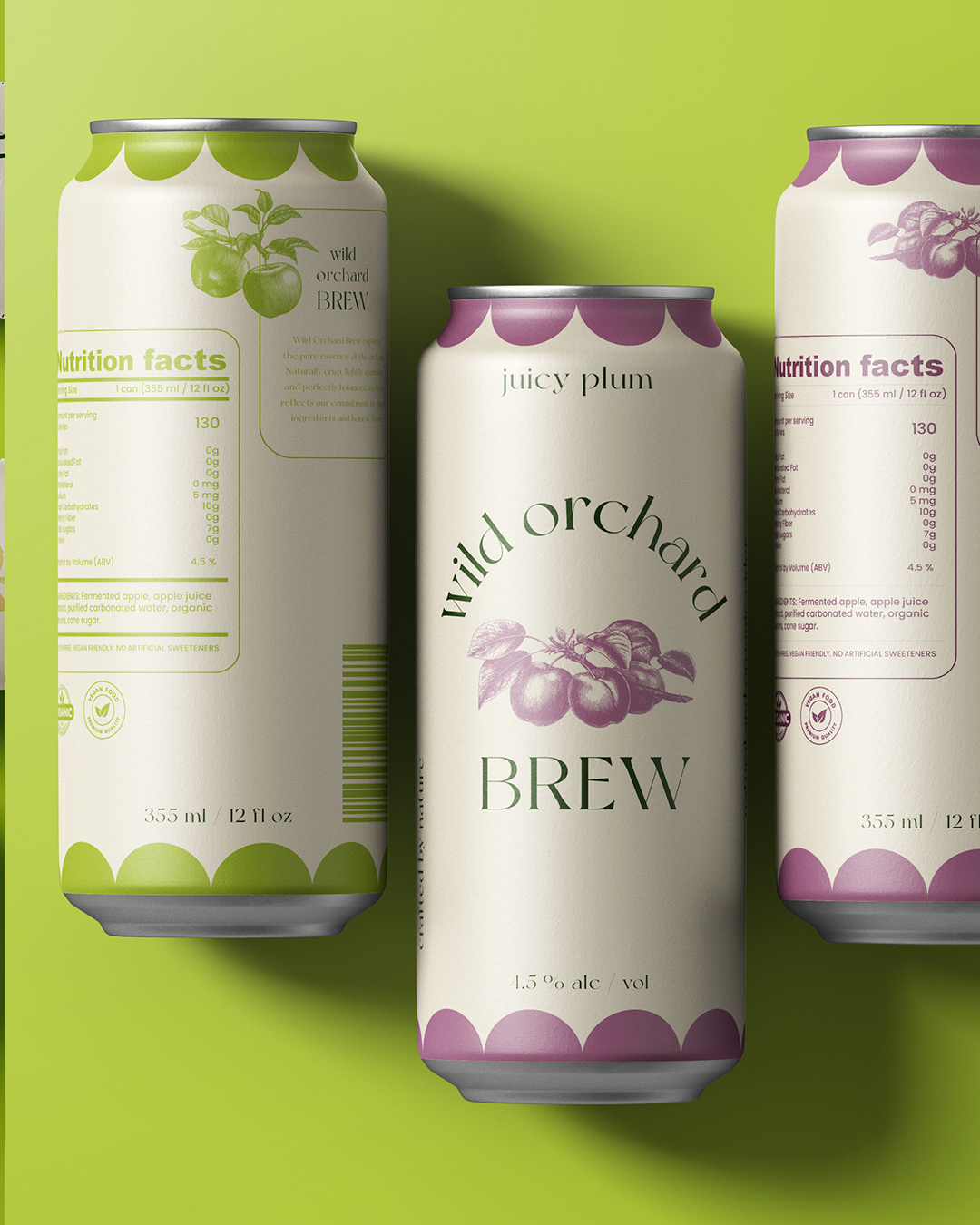 Visual identity and package design for Wild Orchard Brew - a natural and organic cider company Created with adobe illustrator and photoshop. Year: 2025