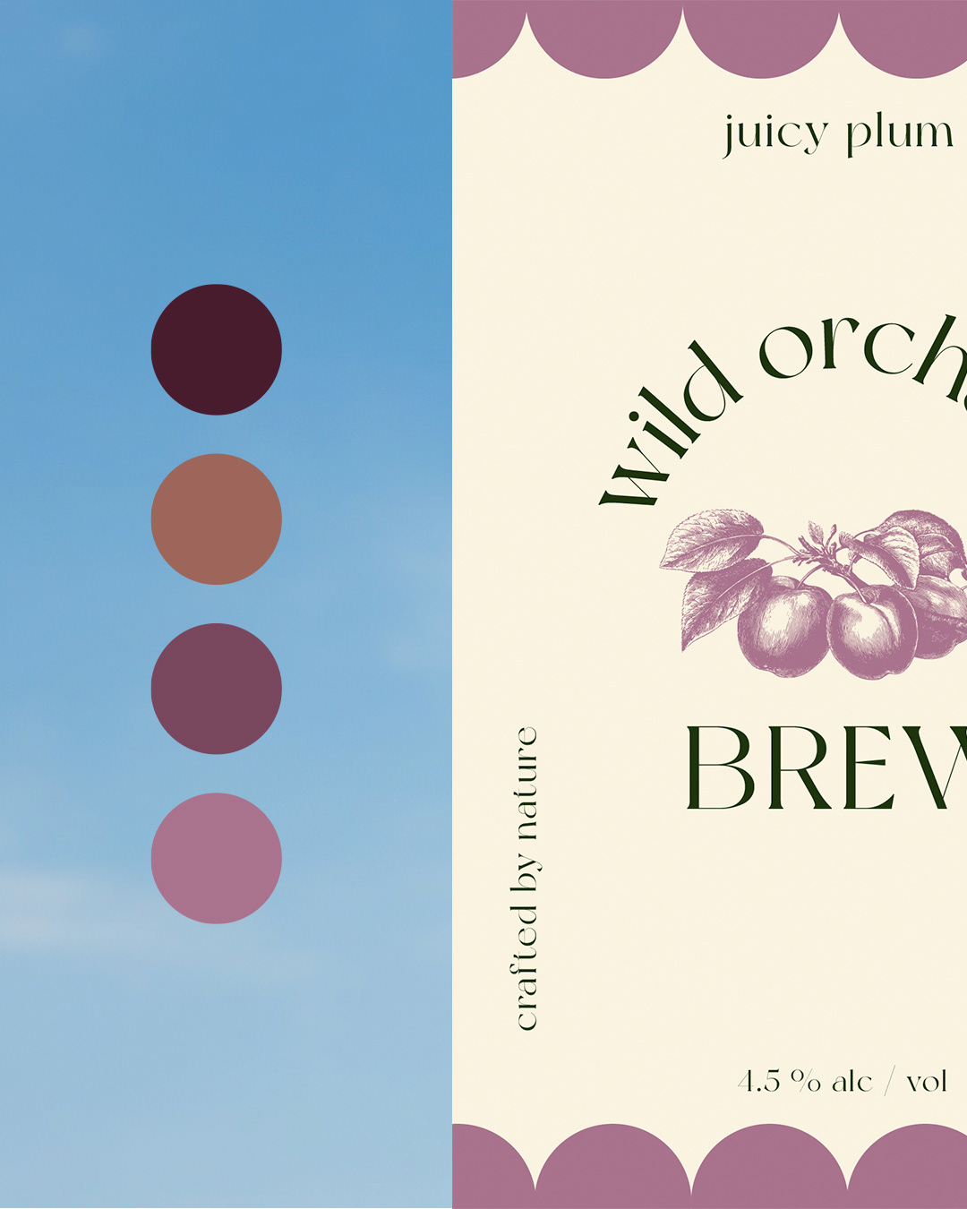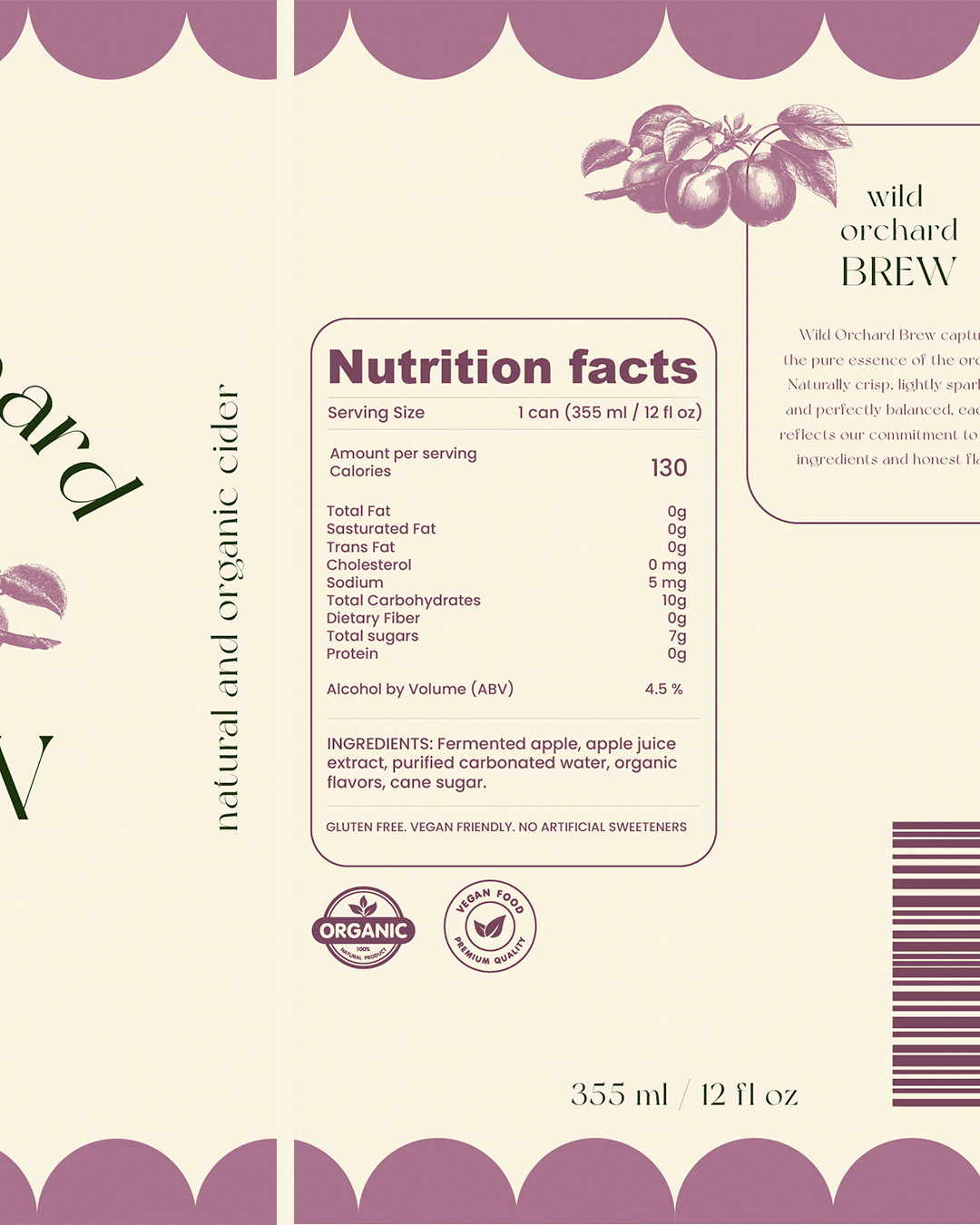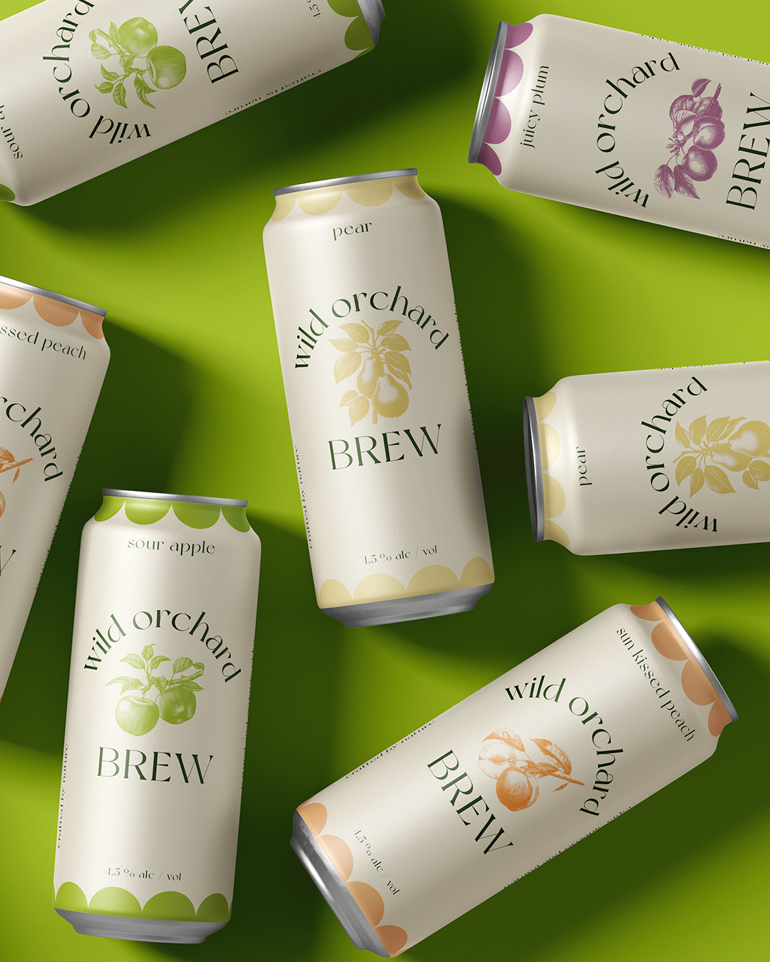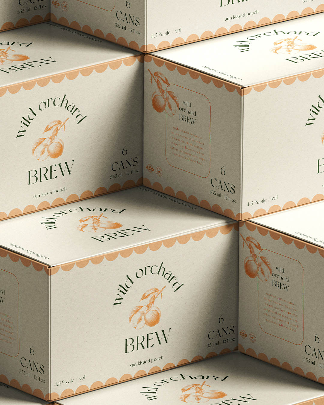 Visual identity and package design for Wild Orchard Brew - a natural and organic cider company Created with adobe illustrator and photoshop. Year: 2025